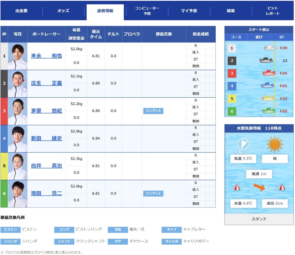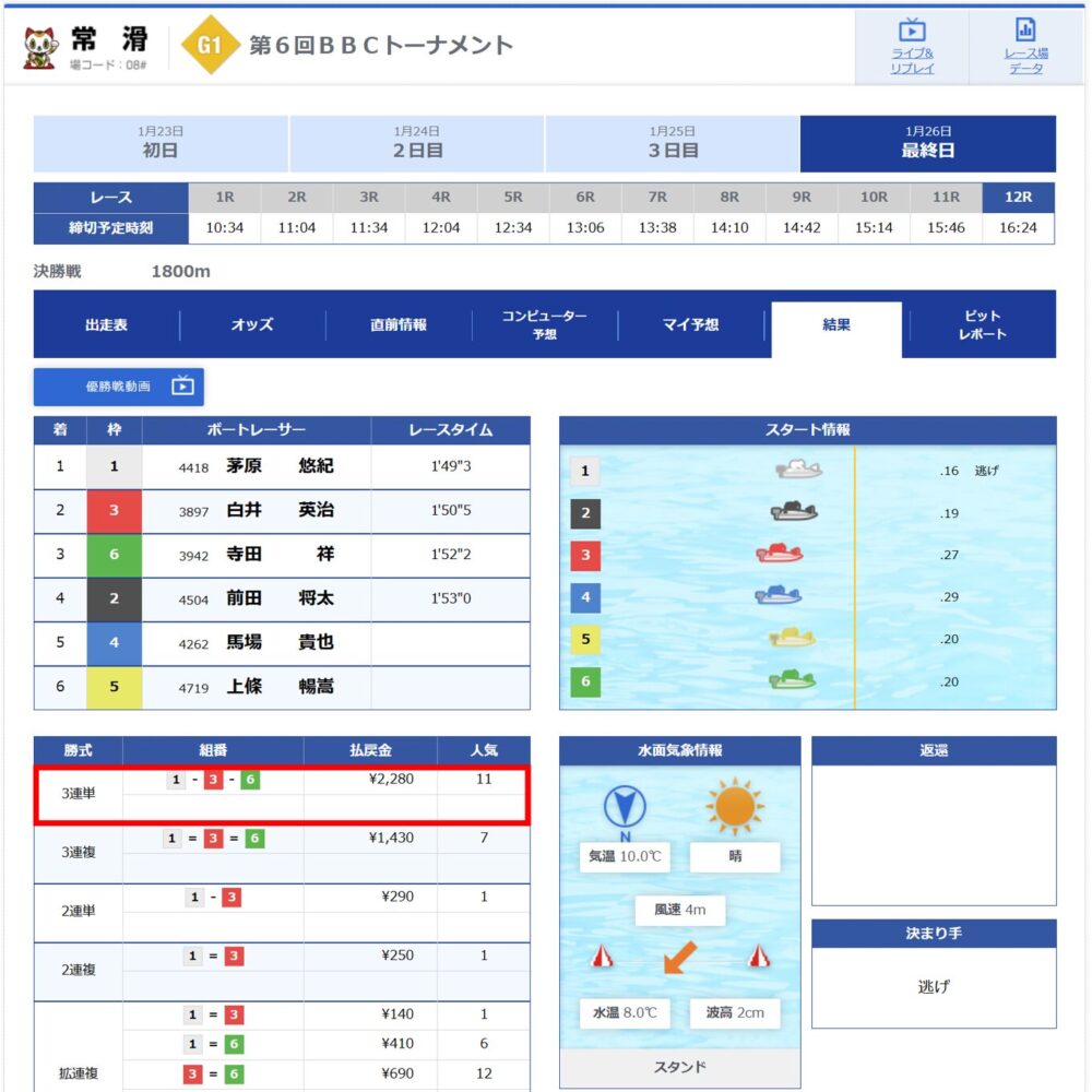 引用元:結果|BOAT RACE オフィシャルウェブサイト