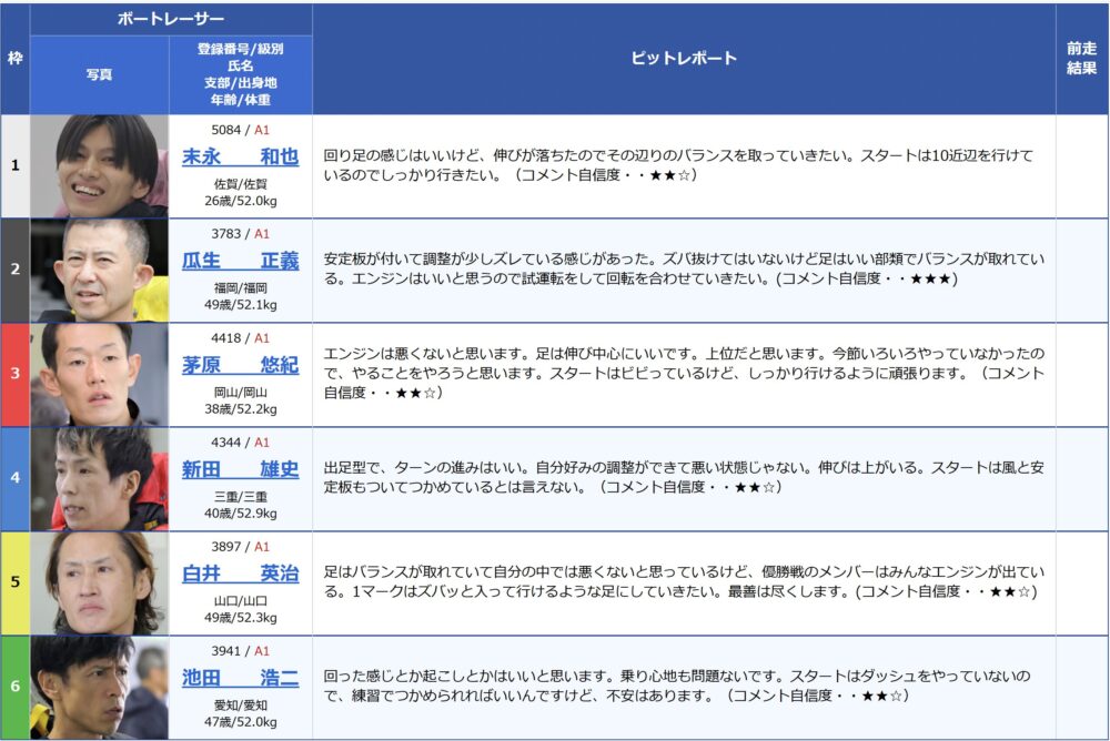 - 西スポレースサイトに掲載されていた、優勝戦を戦い終わった優出メンバーのコメントをご紹介します。