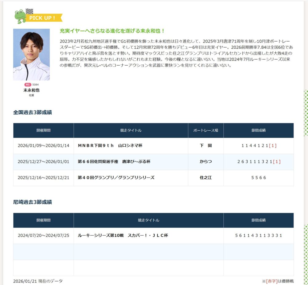末永の次走は30日からの地元唐津G1九州地区選手権。次なる目標は今年も年末のグランプリに出場すること。今回に満足せず、まだまだ勝ち続けそうだ。