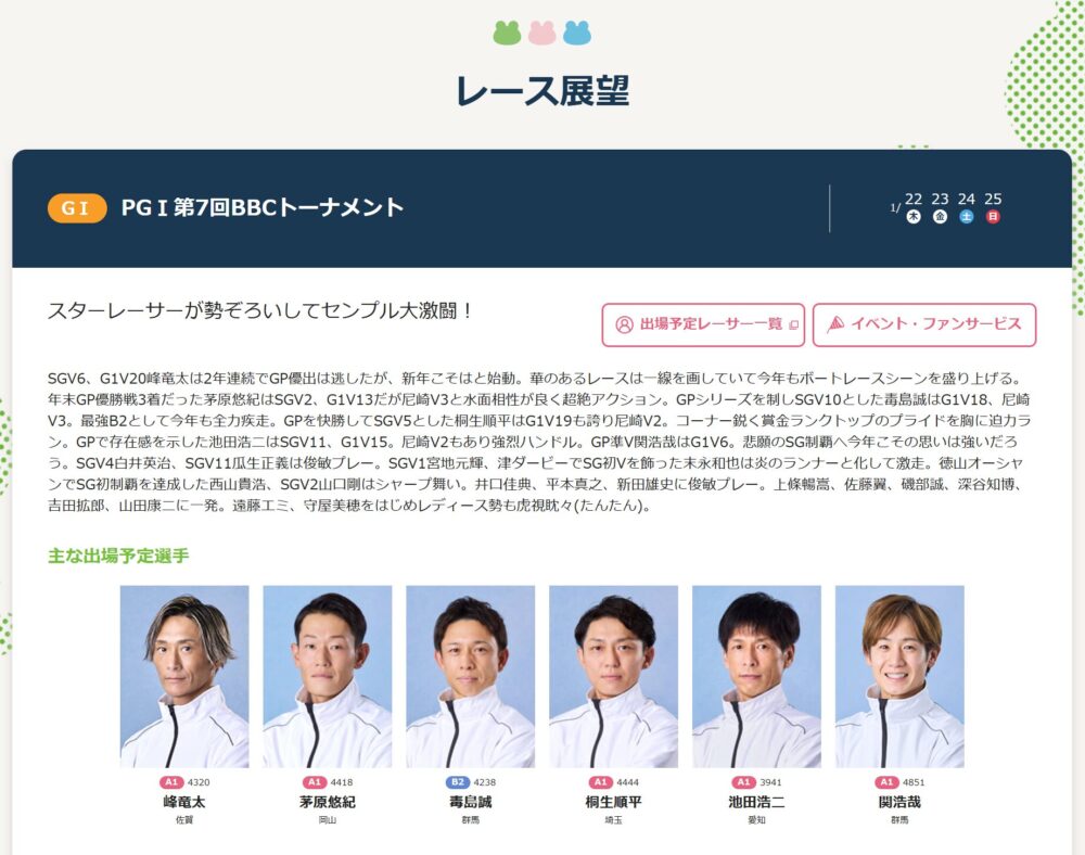 - 2026年の「第7回 BBCトーナメント」は、2025年1月22日~25日までの4日間ボートレース尼崎で初開催